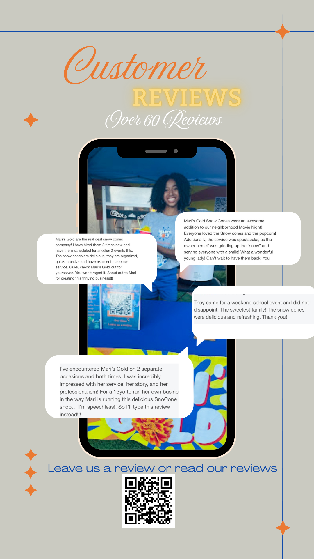 Your go-to in Arizona for snow cones, buttery popcorn, and custom-themed menus that make every party or event unforgettable. From birthdays and school celebrations to daycares, sports events, and summer camps—we tailor the experience to your needs with care, creativity, and kid-approved flavors. Best of all, Mari’s Gold LLC is proudly owned and operated in Phoenix, Arizona by young entrepreneur and author Mariana McWilliams.